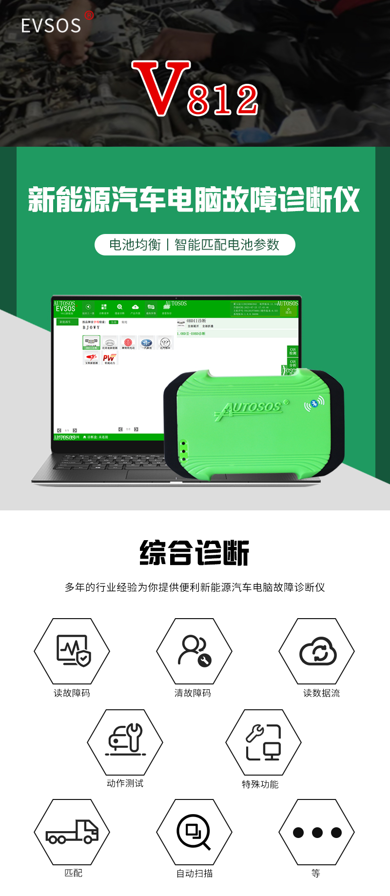 覆蓋97%車型,電池包智能“高精準(zhǔn)”診斷、V812新能源診斷儀全新上市!